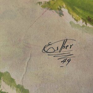 Watercolor Spring Landscape, bright pastels. Signed by Artist Esther "49