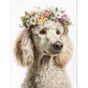 Watercolor Standard Poodle with Flower Crown Wall Art Print, Unframed