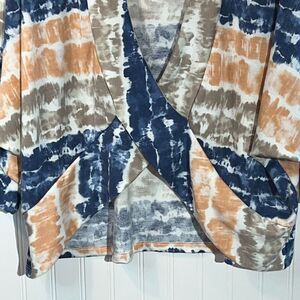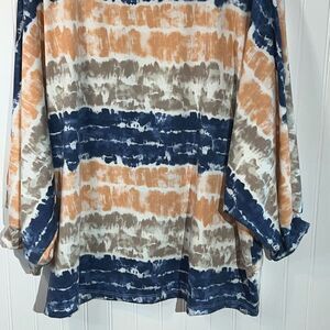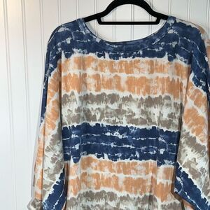 Watercolor Starburst Tye-Dye Top Women 3XLarge Mocha Blue Open Back Sweet Lovely