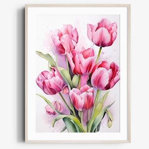 Watercolor Tulips Wall Art Illustration Print Poster Unframed