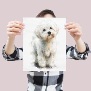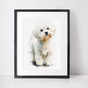Immerse yourself in the endearing fluffiness of a beloved companion with this captivating watercolor portrait of a white Maltese dog, its snowy coat and expressive eyes rendered in soft, flowing strokes that capture pure puppy joy. This unframed print honors the Maltese’s playful elegance, weaving gentle whites, subtle pinks, and whimsical details to evoke the heartwarming bond of loyal friendship. Perfect for pet-friendly homes, nurseries, bedrooms, or cozy reading nooks, this artwork adds a touch of whimsical warmth to modern, eclectic, or dog-themed decor. Printed on premium archival-grade paper with fade-resistant inks, it ensures timeless vibrancy and detail. Frame it to your taste and invite this adorable Maltese to sprinkle endless smiles into your everyday sanctuary.