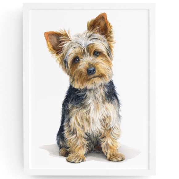 This charming art print perfectly illustrates the expressive eyes and distinguished look of the Yorkshire Terrier. Rendered in a classic watercolor style, it adds a sophisticated yet warm touch to any space, celebrating the personality of this wonderful breed. It's the perfect statement piece for all dog lovers and especially Yorkie parents!