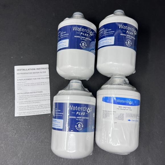 Waterdrop Refrigerator Water Filter WDP-UKF7003 Replacement LOT of 4 New Sealed - 3 are plus, 1 is regular