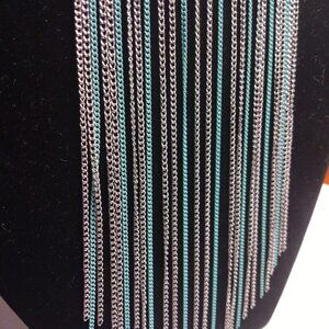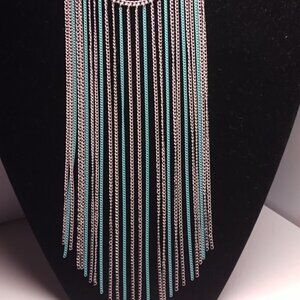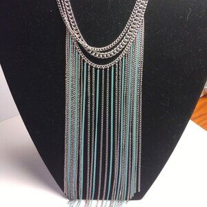 Waterfall Chain Necklace Cascading Fringe Silver Toned & Green Statement Glam