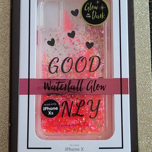 Custom made IPhoneX case. Also fits IPhoneXs. This waterfall glow case is super cute with pink confetti glitter that moves with any movement.