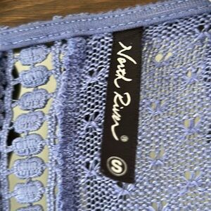 Waterfall Knit Cardigan Periwinkle Blue Open Front Roll Tab Sleeves Size Small