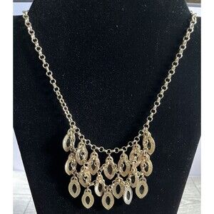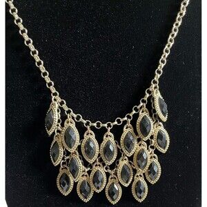Up for sale is this Waterfall Tear Drop Style Bib Statement Necklace Gold Tone Black Jet 20".