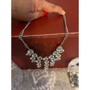 Silvertone and rhinestone/crystal/faux diamond Diamonte look waterfall drop necklace