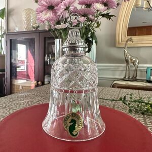 Waterford 12 Days of Christmas 8 Maids a milking . Topped with a silver handle / hanging loop. Features a jeweled bell clapper with maids a milking charm
