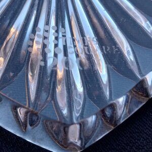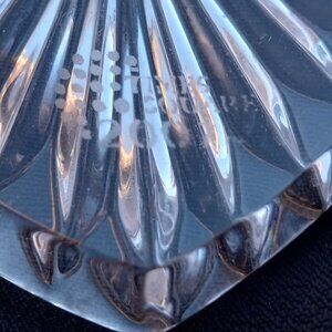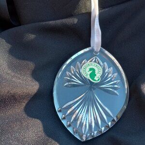 This is a lovely and quite limited Ornament from Waterford Crystal's 2007 Time Square Collection. It measures 3-3/8" x 2-3/*" and hangs from a white ribbon, which is itself branded "Waterford 2007". This ornament has its Irish gold and green Waterford sticker still attached and it is double acid marked, once on its side "Waterford" in the classic Gothic form and another time on its side with the Times Square New Years Ball and the words "Time Square 2007". A super nice find for the ages.