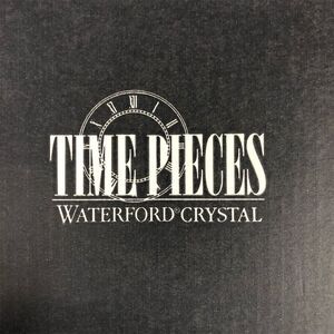 The Waterford desk clock is crafted from clear crystal and features a square shape with an analog display. It is powered by quartz movement and includes a Roman numeral clock face. This original piece is manufactured in Ireland and stands at 3.5 inches tall. The clock is pre-owned. Keywords: Waterford, desk clock, crystal, quartz movement, analog display, Roman numerals, clear, square, Ireland, original, pre-owned.