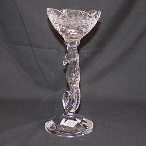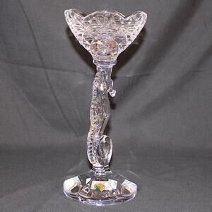 Waterford Crystal Seahorse Pillar Candlestick Signed By Artist
