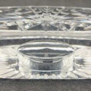 Oval shaped with a fanned cut star burst design on the front and back with deep cuts on the top and side sections. Measures approx. 4-3/4" wide, 1" thick and 2-1/2" high at it's highest point. Crafted in Ireland.