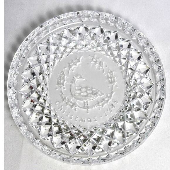 This stunning Waterford Crystal plate is a must-have for any collector! From the Twelve Days of Christmas series, this 1989 edition features the 'Geese-a-Laying' design, showcasing intricate craftsmanship and timeless elegance. Made in Ireland, this plate measures 1"H x 8" in diameter, is in excellent condition and ready to be displayed and admired. It would be a beautiful addition to your holiday home decor-don't miss the opportunity to own a piece of Waterford's exquisite artistry!