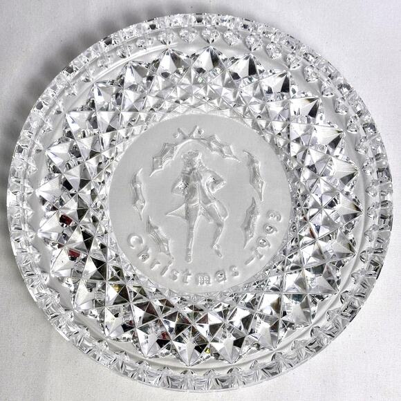 This stunning Waterford Crystal plate is a must-have for any collector! From the Twelve Days of Christmas series, this 1993 edition features the 'Lords-a-Leaping' design, showcasing intricate craftsmanship and timeless elegance. Made in Ireland, this plate measures 1"H x 8" in diameter, is in excellent condition and ready to be displayed and admired. It would be a beautiful addition to your holiday home decor-don't miss the opportunity to own a piece of Waterford's exquisite artistry!