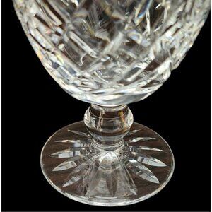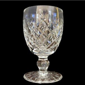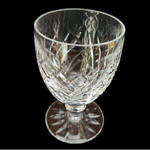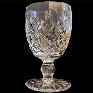 Vintage Waterford water or wine goblet in Donegal pattern. Signed Waterford. Approximately 5-1/4" tall, 3-1/8" top diameter. Excellent pre-owned condition. No chips or cracks.