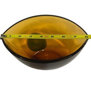 Waterford Evolution Amber Glass Bowl Blue Swirl Signed 6"x8" Luxe Decor