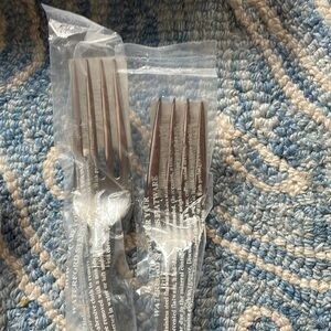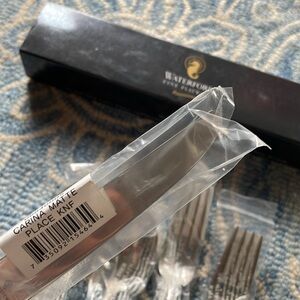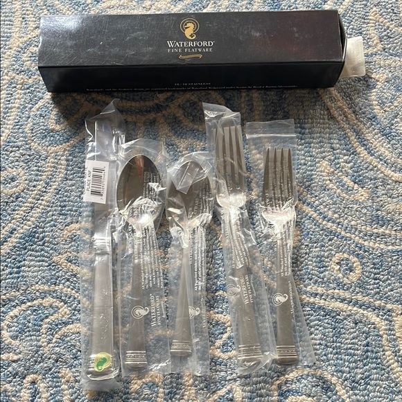 2 forks 2 spoons and 1 knife Waterford carina marte. The box is a little beat up but the items are unopened still in their plastic and in their box. Replacements is selling a smaller set for $229. I am pricing even lower for the 5 piece
