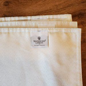 Set of 3 fabric placemats by Waterford Linens. These are in a nice quality cream colored fabric, with a design of birch trees in beige and silver-grey. From 2014 but barely used. Excellent used condition, like new. 100% polyester with a satin-like finish. Machine wash, tumble dry.