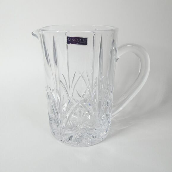 Waterford Marquis Brookside pattern crystal pitcher. 6.5 inches tall with a 32 ounce capacity. Still has original foil label from Waterford. Never used, beautiful shape with no chips, cracks, or scratches.