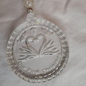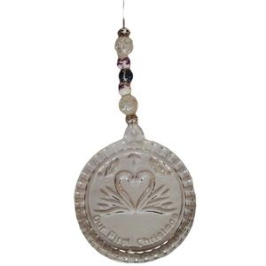 Pre-owned item in very good condition. 3.25" wide. I added the hanging string.
