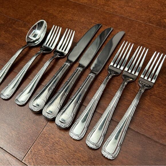 Waterford Russborough Stainless Steel Flatware Silverware Mixed Set, 9 Pieces
