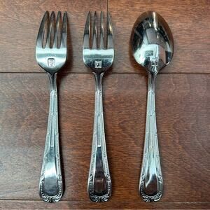 Mixed set includes three knives, two large forks, two small smaller forks and one spoon
