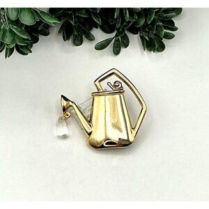 This gold-tone brooch, shaped like a watering can, features a charming crystal drop accent. Ideal for garden enthusiasts or as a unique accessory, it's versatile enough to add a touch of whimsy to any outfit. Securely fastened with a pin closure, it's both stylish and functional.