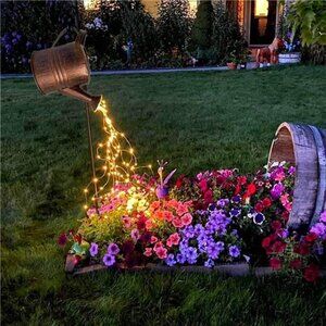 🧿🦄DIY Your Novelty Garden Decoration-LED copper string string lights can be easily bent and shaped to your liking. yard to hang watering can with lights that look like it is pouring water. Dress up your garden like a fairy tale world.