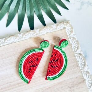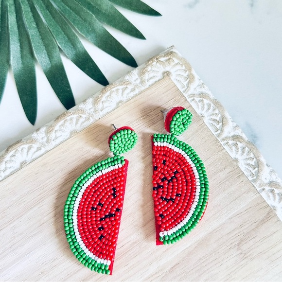 Watermelon Beaded Earrings Dangle Summer Picnic Jewelry Fruit Gift Cute Boho NEW