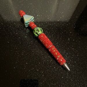 Unique pen with red and green beads. Perfect for adding flair to your writing.