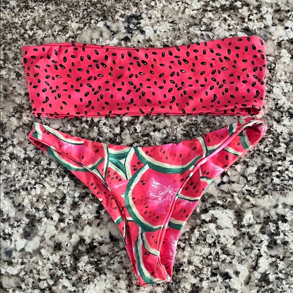 Adorable watermelon print bandeau bikini. Excellent condition! Medium top & bottom.