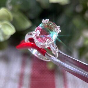 *Watermelon Colored Stone Ring *Probably just glass or plastic *Excellent condition *Size 7 *Not real silver
