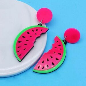 Colorful Watermelon Fruit Earrings. They are very colorful to go with any summer outfit. These are very lite weight, and they are just stunning in color.