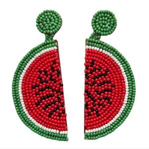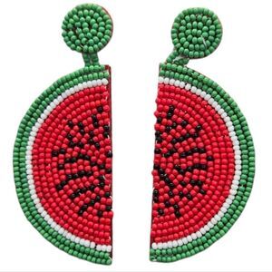 Watermelon Large Seed Beaded Dangle Earrings Tropical Fruit Jewelry Pierced Ears