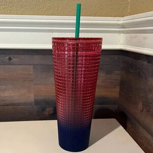 Watermelon Pink Blue Ombré with green straw Starbucks Venti Tumbler New with Tag