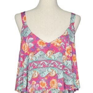 Watermelon Pink Floral Scoop V-neck Yoke Detail Sleeveless Dress Size 1X