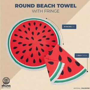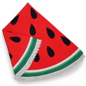 Watermelon Round Beach Towel with Fringe - 59" Diameter, Fun Summer Decor
