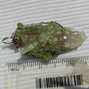 Gorgeous Watermelon Tourmaline cluster, wire-wrapped in 925 silver as a pendant. Real convo starter. Lots of fun and meditation gazing into it's points