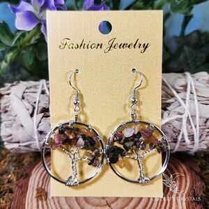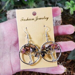 Watermelon Tourmaline Tree of Life Earrings #1
