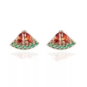 One pair of watermelon Fruit Small Red & Green Stud Earrings New