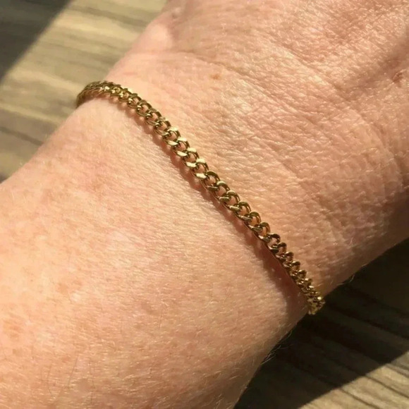 Waterproof 316L Stainless Steel & 18k 3mm Cuban Chain Bracelet NWT