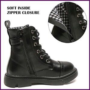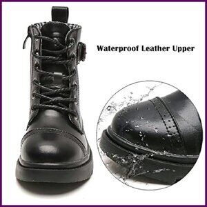 Waterproof Combat Boots Kids Side Zipper Lace Up Mid Calf Outdoor