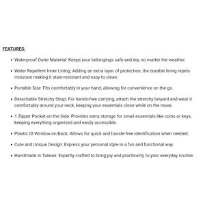 Introducing a stylish and practical ID holder featuring a waterproof exterior and water-resistant interior. Compact and fashionable, it easily accommodates folded bills and coins in its side pocket. Equipped with slots for cards and a clear plastic ID holder, it's perfect for anyone needing a badge holder for work. The stretchy, detachable strap allows for comfortable wearing around the neck, so you never have to take it off. The versatile design lets you slip it into pockets, bags, or carry it by hand. An ideal gift for any Corgi / dog / pet lover, expect a shower of compliments with this adorable and unique design!