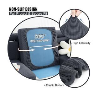 Waterproof Couch Cushion Cover Stretch Jacquard Elastic Bottom MIDDLE - GRAY