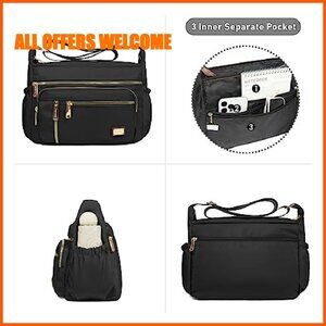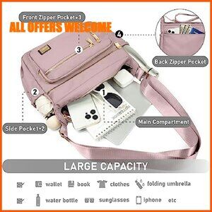 Waterproof Crossbody Bag Multi-Pocket Shoulder Purse Lightweight Polyester