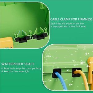 🧿【IP54 Rated Waterproof】Each inlet/outlet of the outdoor electrical box is equipped with a wire limit snap and rubber seals wrap can be tightly formed around the cords perfectly keep the extension cord box watertight, helps keep all your home electrical equipment safe and dry.