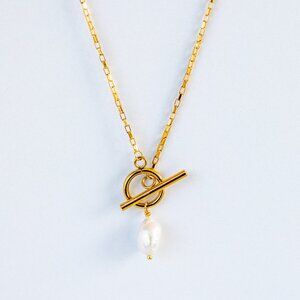Waterproof Gold Toggle Necklace Baroque Pearl non-tarnish Gold Chain Necklace