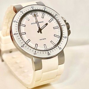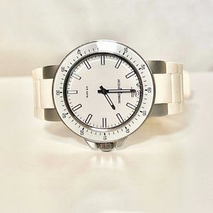 Stainless steel and white silicone Milano model, Quartz movement, mineral dial window, pin buckle clasp. Effective to 10 bar water pressure resistance. Needs a new battery. BUNDLE AND SAVE