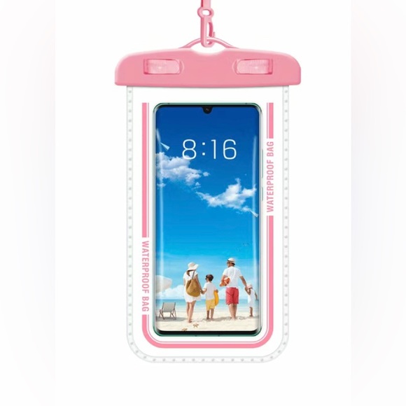NWT. Waterproof bag protects devices up to 7”. Fully submersible. Snap/lock closure. Pink lanyard included.